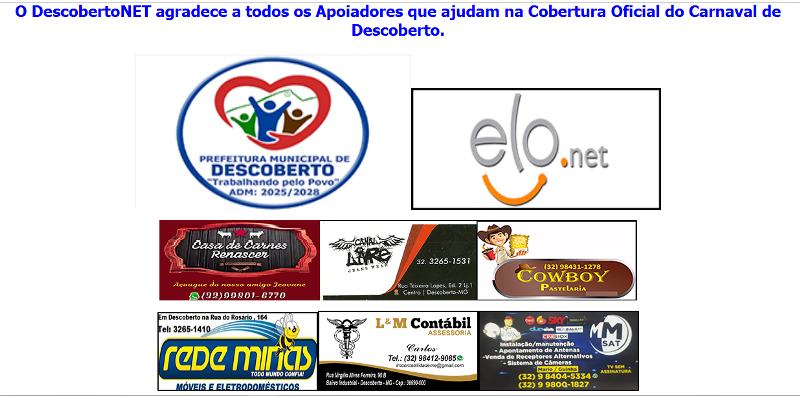 O Carnaval 2026 de Descoberto chegou ao final, nesta Terça-feira, 17/02/2026. Queremos cumprimentar a Administração Municipal pela realização de mais um carnaval, que se teve "Grandes Estrelas", dentro de nossas limitações foi muito elogiado por muitos locais e visitantes, pois foram dias de muita alegria, sem maiores problemas, como brigas, enfrentamos e outros. Parabéns a Equipe de Seguranças, Polícia Militar, Barrraqueiros, funcionários da Prefeitura e todos os que colaboraram na realização da festa. Parabéns ao Michel Mimi, a minha esposa Paula, que cuidaram da ornamentação e fabricação das peças que enfeitaram as ruas. Parabéns ao amigo Írio Henriques pela Apresentação da festa, ao Vitinho e Dudu pela Sonorização, ao Secretário de Cultura, Gui Teixeira, pela dedicação a pasta, aos artistas que se apresentaram e ao povo que esteve presente e aproveitou até a última música. Aproveitando para falar para aqueles que reclamaram da programação, que ao contrário de muitas cidades que tiveram a presença dessas estrelas em seu evento e pra isso deixam de realizar outras festas, como Expoição Agropecuária e outras, Descoberto é uma cidade festeira. Temos a Expô Agro, Concurso leiteiro, Festa de São João, Reveillon, Natal, e outros diversos eventos, sem passar dificuldades para honrar seus compromissos, isso, devido ao planejamento, muito bem feito. De nada adiantaria termos artistas consagrados e consequentemente "muito caros" em uma única festa no ano e não ter outros eventos. Tudo tem que ser feito com planejamento e juizo e é preciso que todos saibam e entendam isso. Neste último dia dos festejos de Momo no município tivemos: A Cia de Dança Sonho Meu, Bloco do Boi, Thayná Vasconcelos (que nós não conhecíamos e que fez excelente show) e para fechar a "tampa", o show do DJ Léo. E que venha o Carnaval 2027!